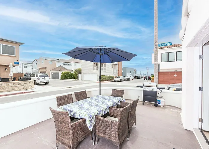 Pet-Friendly 3Br Retreat One House From The Sand By Beachview Rentals Newport Beach villa ligt binnen 15 minuten lopen van Newport Pier en nodigt gasten uit om te ontspannen op een patio.